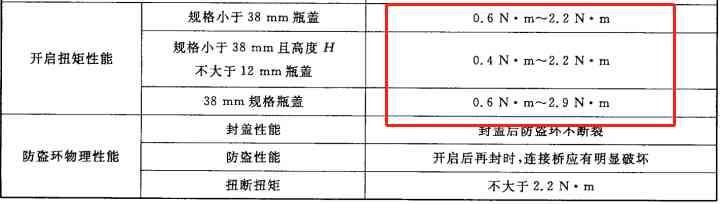 这个值不能太大,否则大部分消费者都无法打开;也不能太小,否则瓶盖容易松动,途中就洒了大半;即使没有洒,也容易漏气变质。