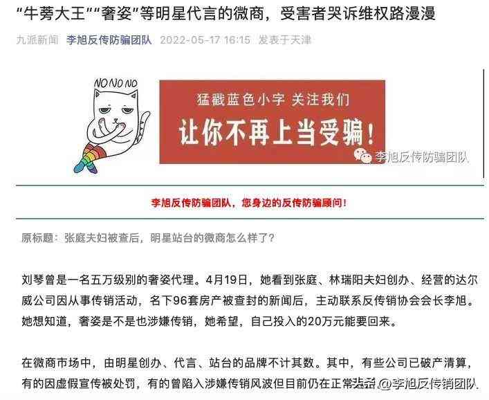 最后,李旭反传防骗团队再次呼吁大家,一定不要相信一部手机快速暴富、短视频快速暴富、写文案快速暴富,躺平也能暴富等传销诈骗局,一定要明白,所有的事情必须是踏踏实实的努力工作,努力付出,才能获得正常的稳定收入。对于奢姿传销事件的进展,李旭反传防骗团队也将会持续关注。