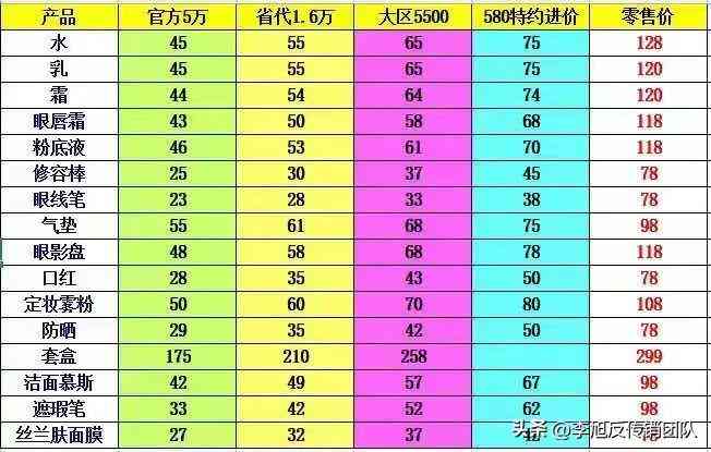 奢姿化妆品代理商的价格表(奢姿化妆品的价格和图片)