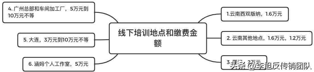 线下培训地点主要是在云南西双版纳,厦门,大连,广州的加工车间,以及涵妈个人工作室(奢姿主要核心诈骗人员)。