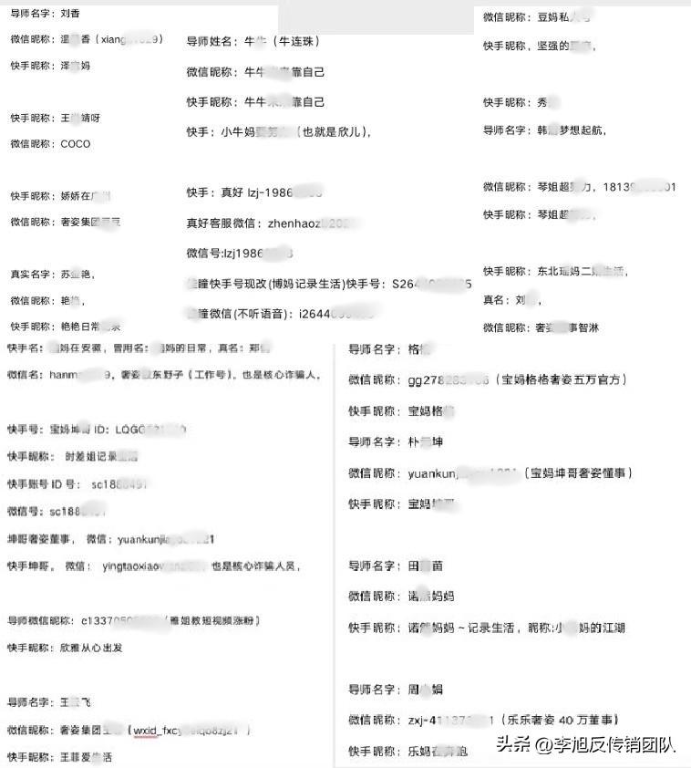 根据求助者的反馈,李旭反传防骗团队整理了一部分的奢姿团伙的快手行号和微信账号进行曝光,希望广大民众,更加注意以及防范他们。