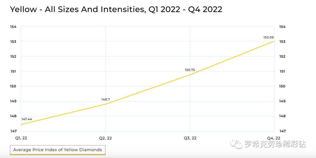 2022年第四季度,所有黄色钻石上涨了1.5%,没有任何一段出现下降。