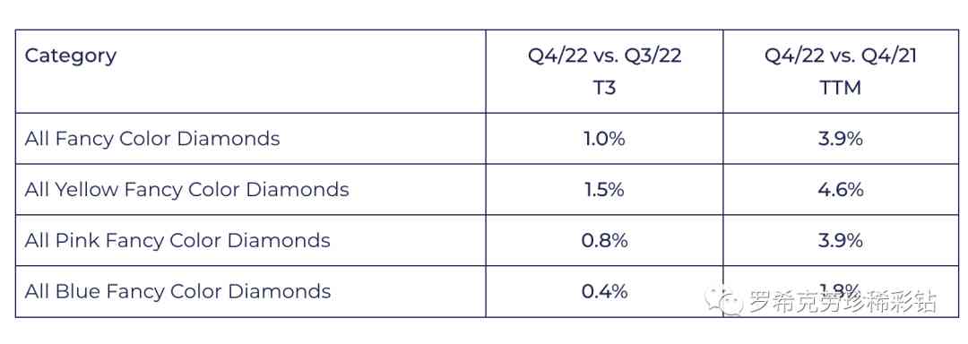 彩钻研究基金会(FCRF)最近公布了第四季度和2022年全年彩色钻石指数(FCDI)的结果: