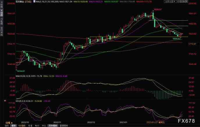 技术面来看,金价守住了1800一线支撑,KDJ相对低位结成金叉,K线低位长下影线阳性,短线见顶信号有所增强,若能收盘于10日均线1828.5上方,则增加短线看涨信号,21日均线阻力在1852.21附近,55日均线在1860关口附近,需要收复该位置,才能扭转金价近期跌势。