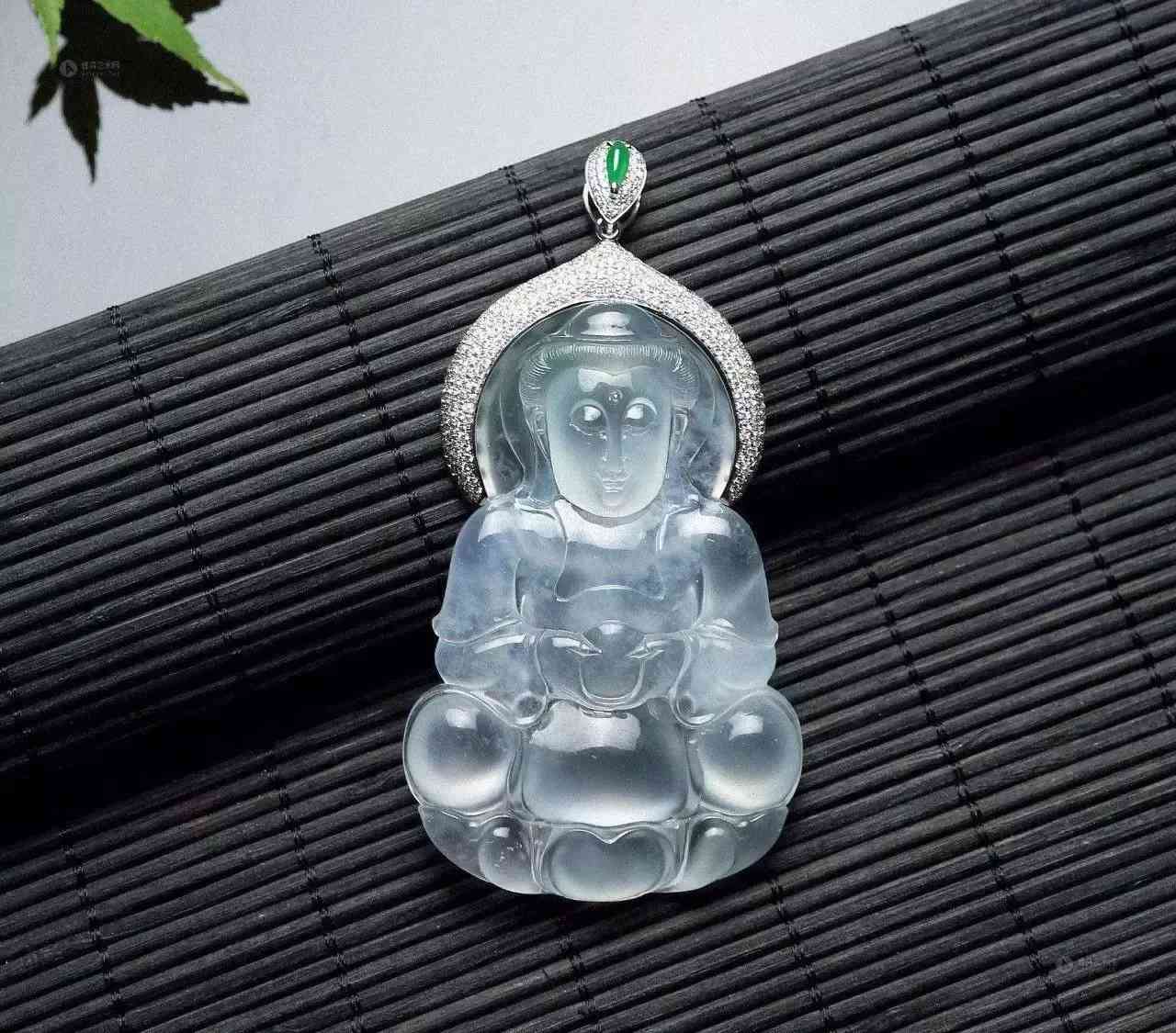 如果是镶嵌类的翡翠观音,一定要警惕买到故意打薄的广片料,那样的虽然看起来水头还不错,但没有用料足的翡翠观音的饱满感。除了翡翠观音本身之外,镶嵌的底座也是非常值得注意的,好的镶嵌能让翡翠观音整体更为亮眼。