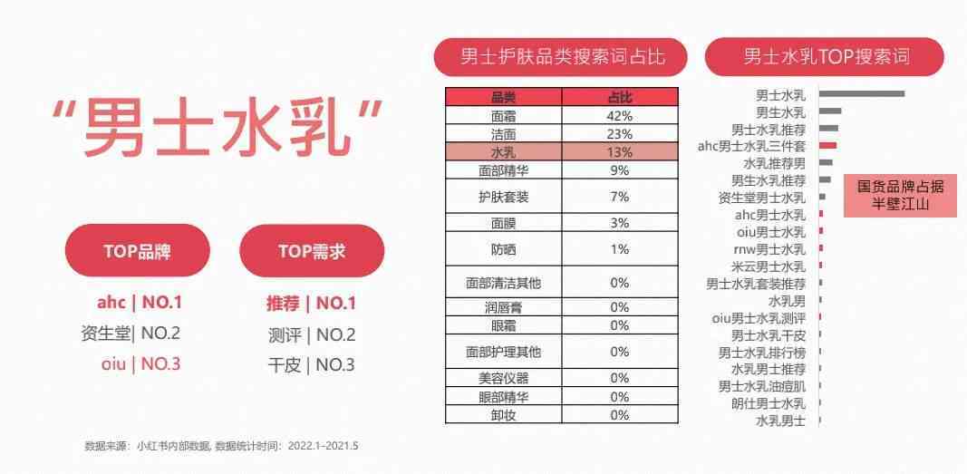 小红书的数据显示,在男士化妆护肤品的搜索及销售数据中,国货占据半壁江山。