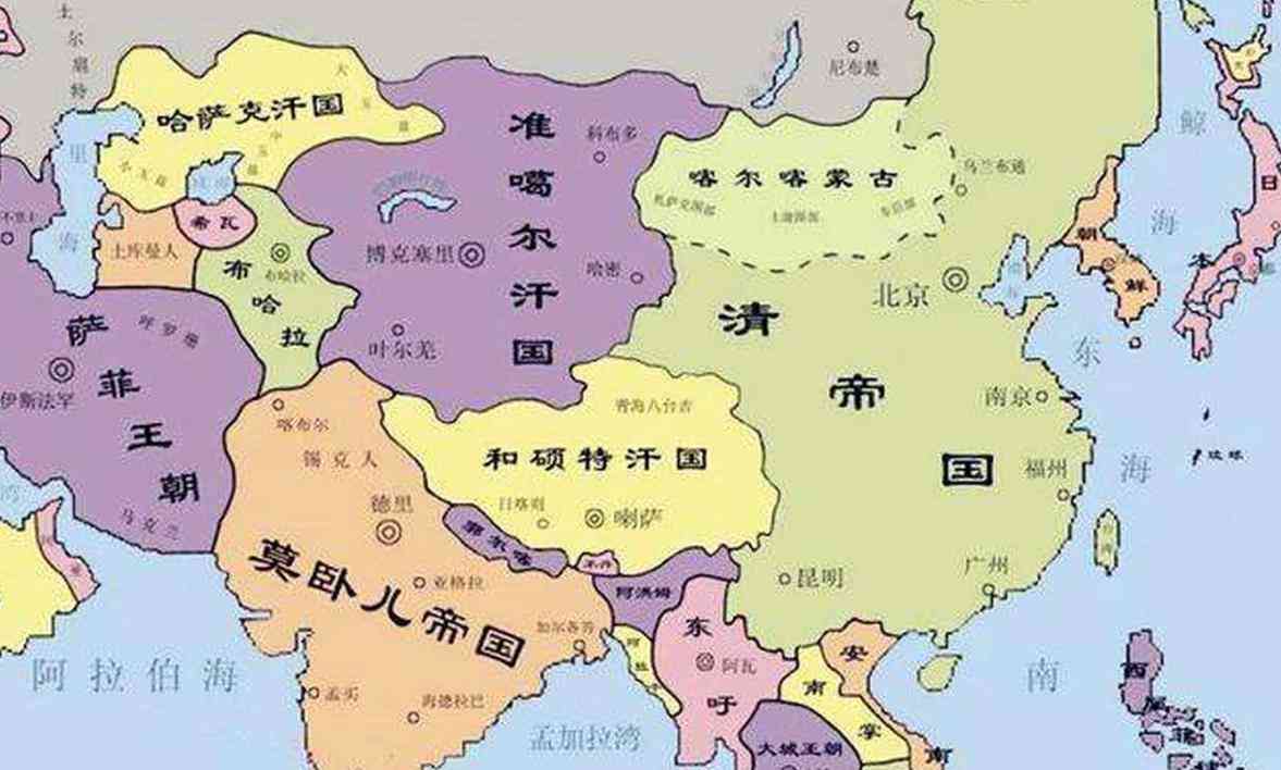 莫卧儿帝国巅峰时期,占据了整个南亚次大陆以及阿富汗的地盘,坐拥450万平方公里的土地,实力非常雄厚。莫卧儿帝国和当时的明朝、伊朗的萨法维王朝、中东的奥斯曼帝国并称为亚洲四大帝国。