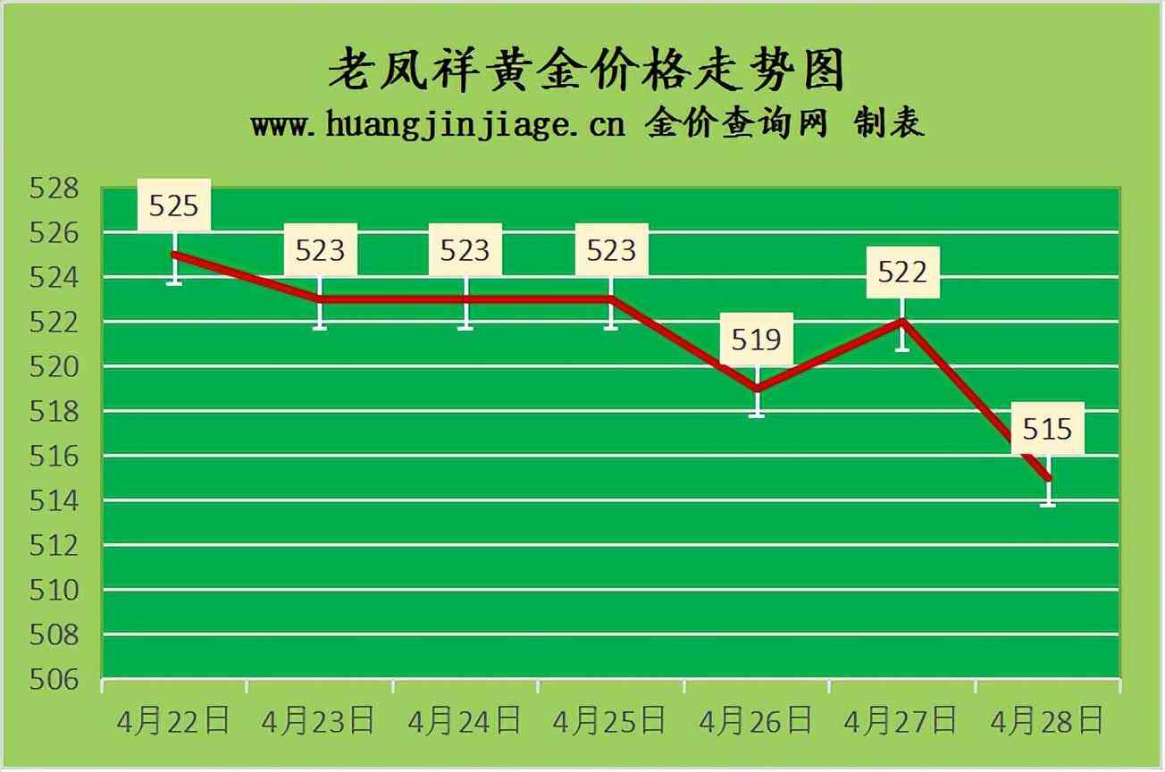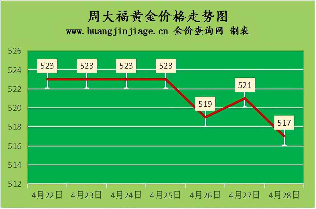 周大福黄金价格517元/克(跌4元),六福黄金价格517元/克(跌4元),周生生黄金价格516元/克(跌5元),金至尊金价517元/克(跌4元),谢瑞麟金价516元/克(跌5元),老凤祥黄金价格515元/克(跌7元),老庙黄金价格515元/克(跌7元),菜百金价515元/克(-),周大生金价517元/克(跌4元),中国黄金价格528元(-),金大福金价512元/克(跌4元),潮宏基金价517元/克(跌4元),周六福黄金价格518元/克(跌4元)。