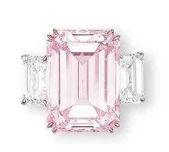 这颗夺目的粉红钻镶嵌在一枚女款戒指上,配以独特的椭圆形镶钻黄金托架,是2015年5月佳士得日内瓦瑰丽珠宝拍卖上的一大焦点