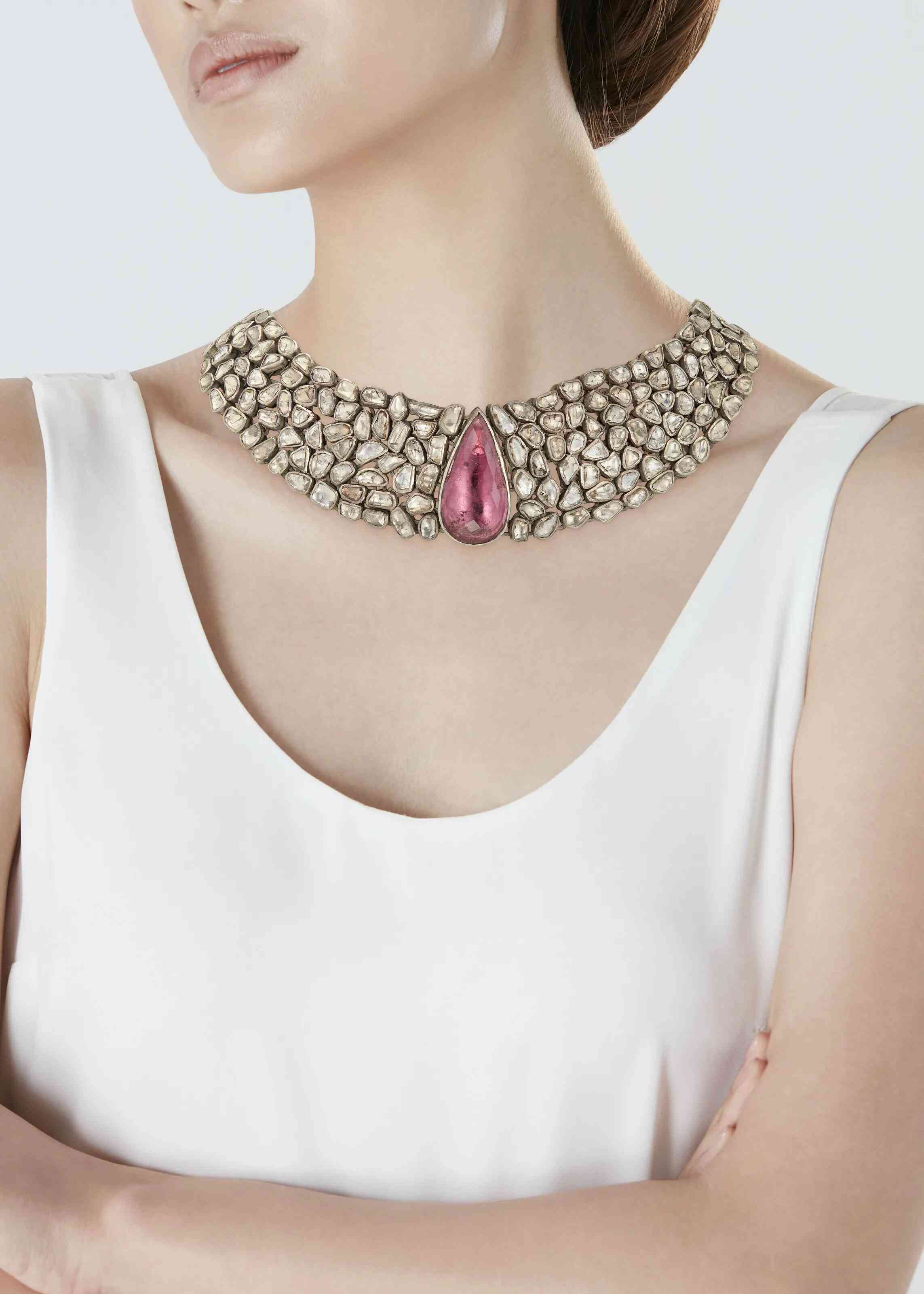 印度粉色碧玺钻石项链