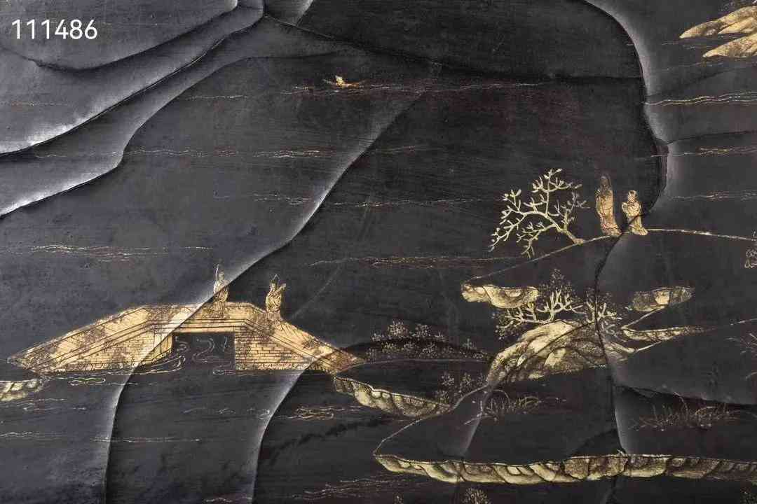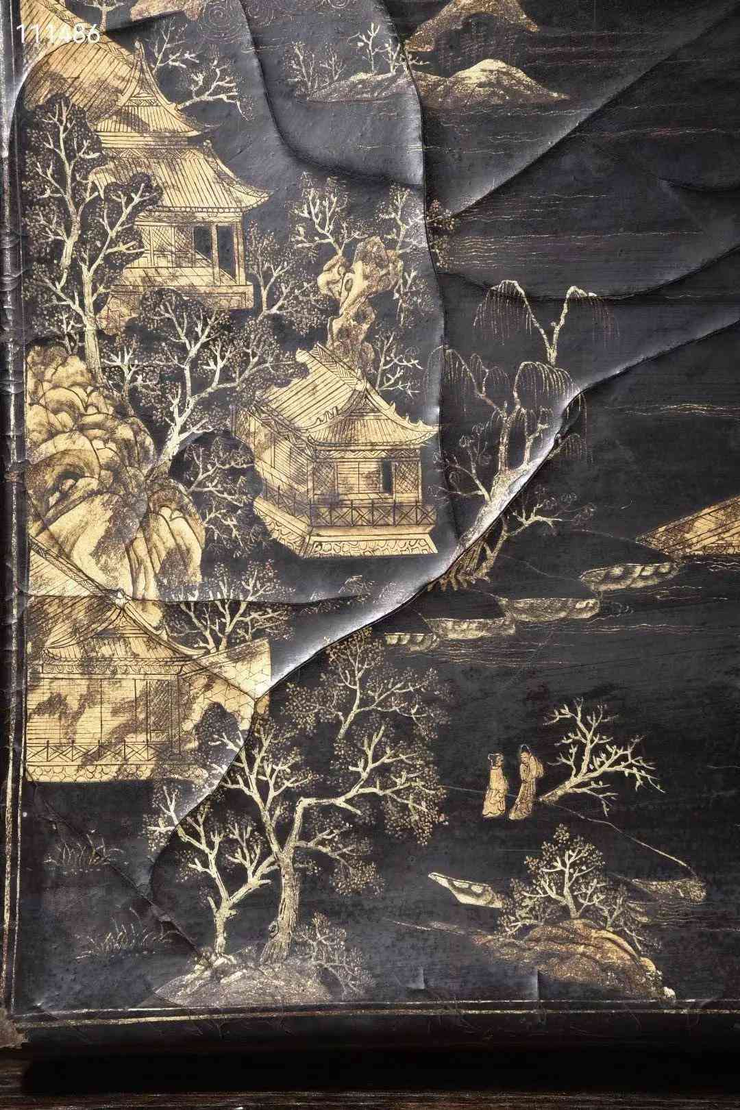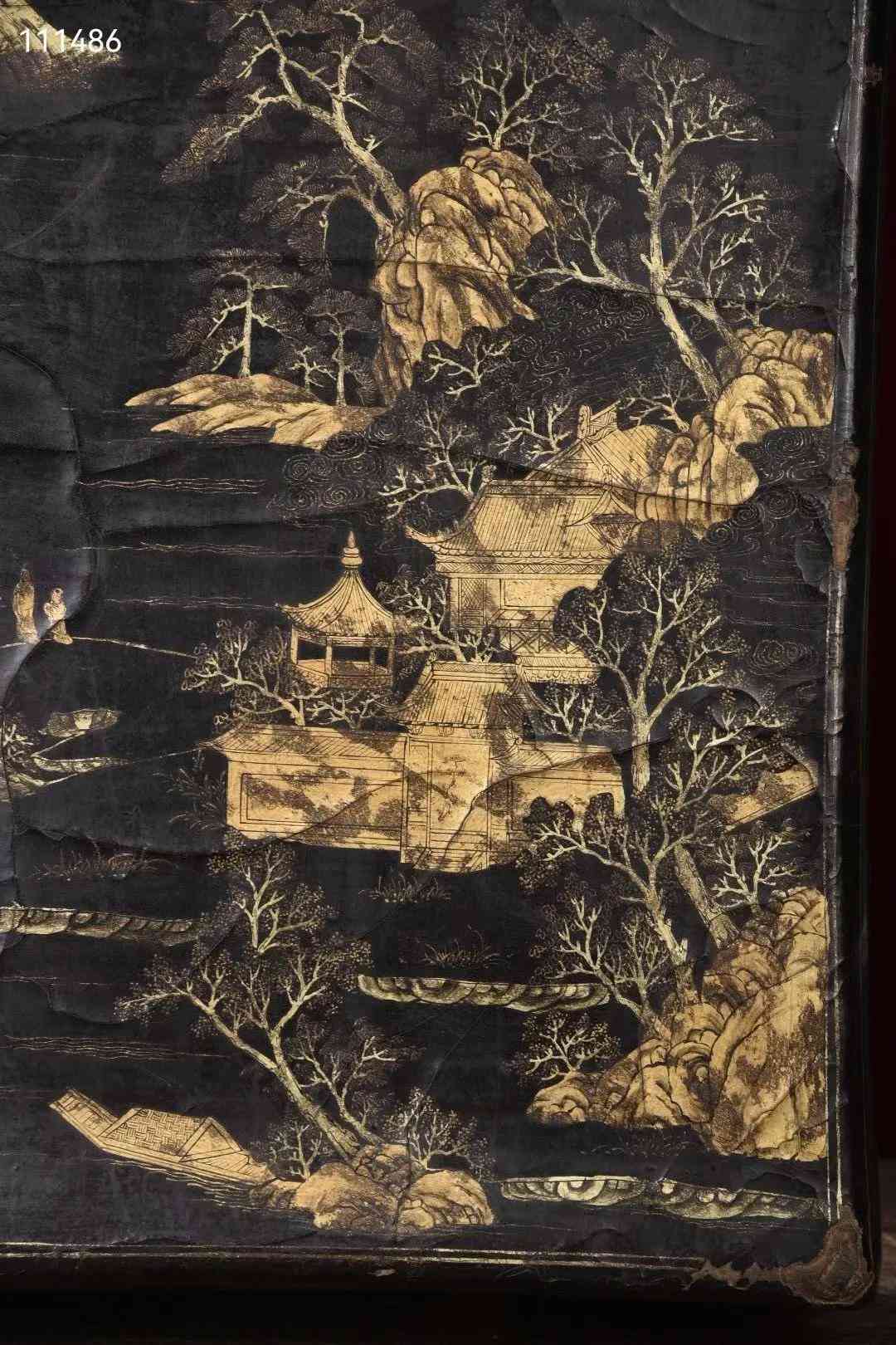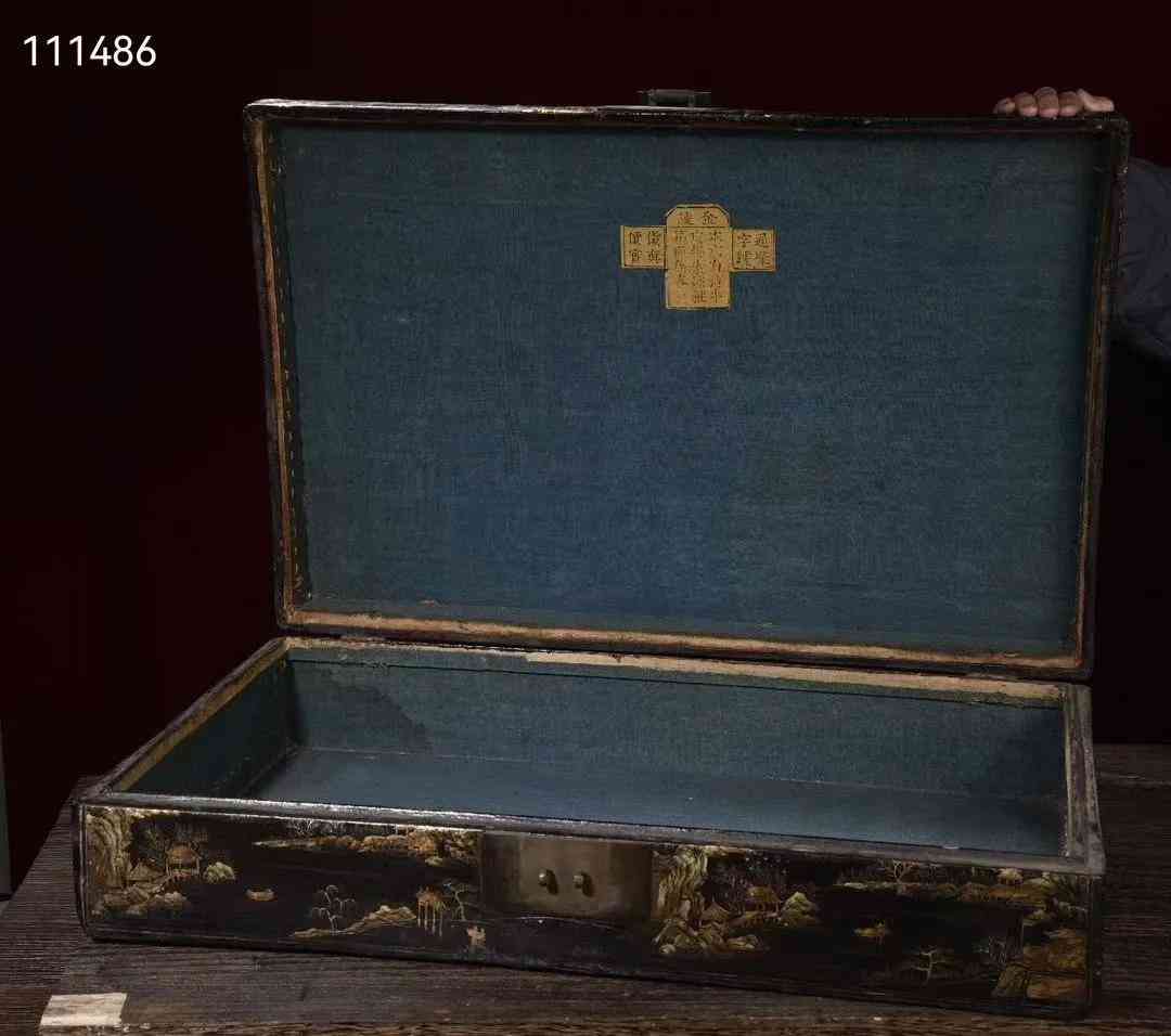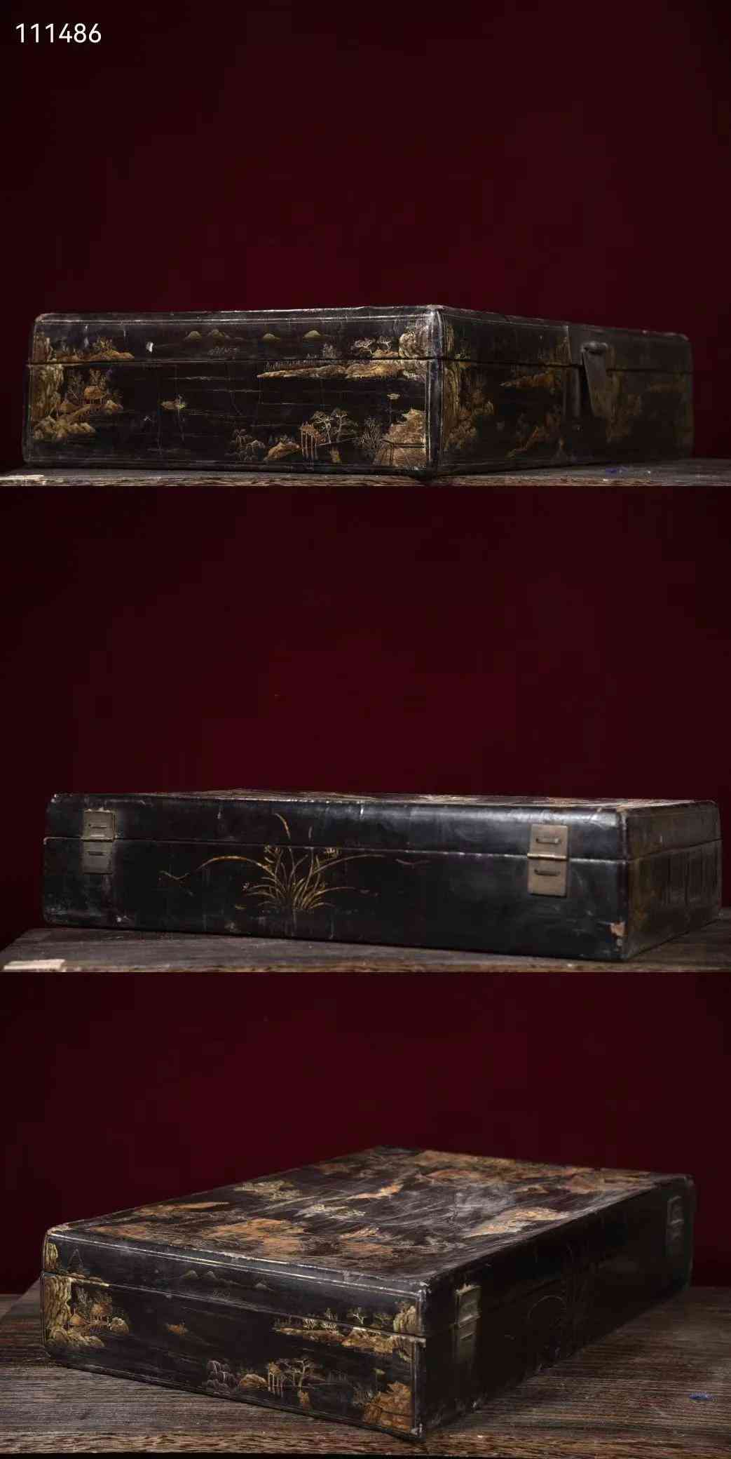 大尺寸老皮胎描真金漆器山水图收纳箱