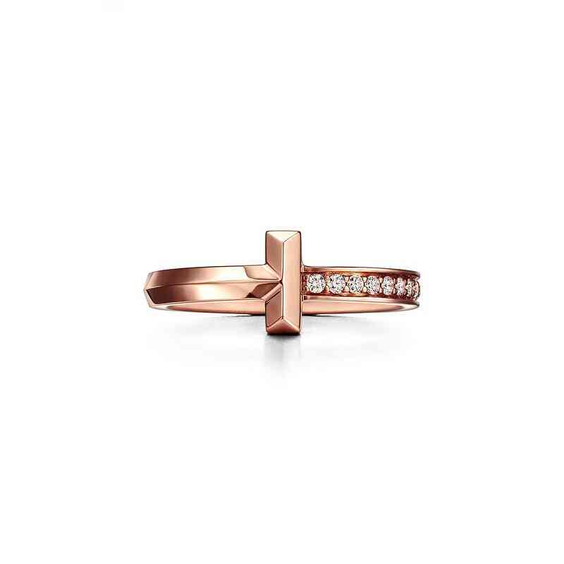 由象征 Tiffany & Co. 品牌的英文字母T重复堆栈组成圈环的Tiffany T True 系列戒指,以鲜明直角彰显摩登气息和活力,再仔细鉴赏,还能发现T字母其实是两两相依横放,也为这款入门款时髦戒指添加浪漫寓意。另外还有T1,用单一个字母T绕成圈环,将斜边重新塑型、倒角抛光、密镶钻石,更显质感与辨识性。