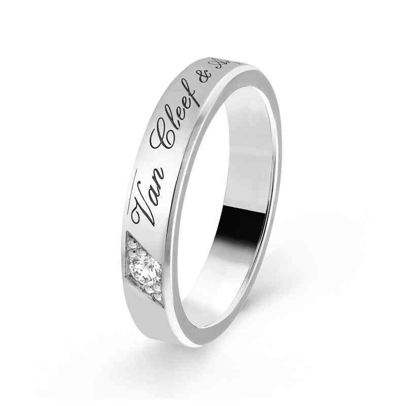 因为 Alfred Van Cleef 与 Estelle Arpels 的婚姻才有 Van Cleef & Arpels (VCA) 梵克雅宝,品牌本身就是源自一段爱情。在众多系列中,Toujours Signature Etoiles以低调直观的线条,成为合衬度极高的优雅对戒,备有镶嵌圆钻的菱形标志、蝴蝶结图腾两种变化版本, 在简单中崭露不凡美感。另外一款Tendrement Signature 铂金婚戒,其纯粹优雅让它成为品牌旗下众多系列当中最受推崇的对戒。以铂金铸造的无暇窄版圈环,中央带有微妙澎润弧度,两侧的倒角也极为顺畅圆润,再加以 Van Cleef & Arpels草写品牌标志,绝对是可以戴上一辈子的经典。