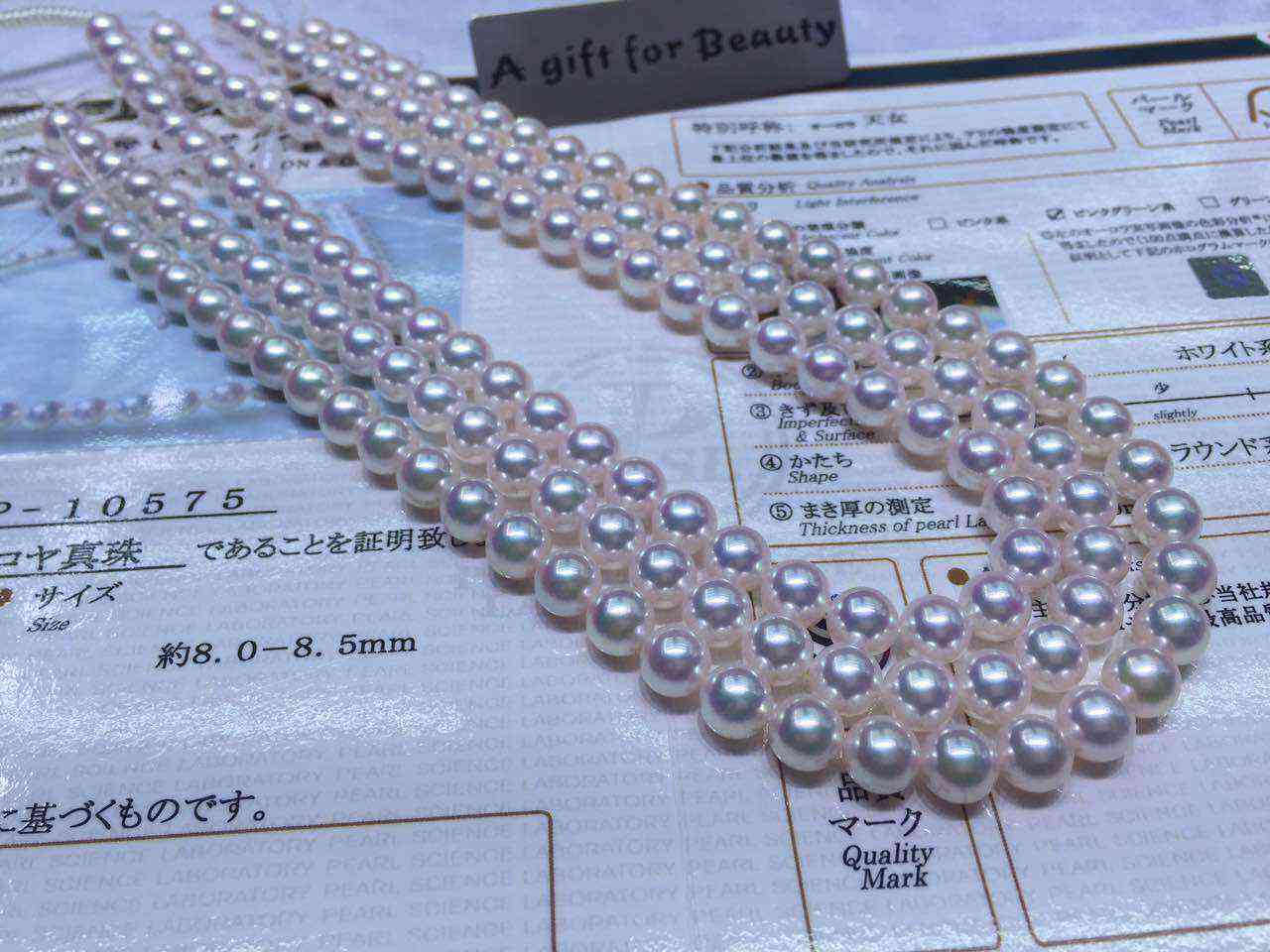 我国对珍珠的分级瑕疵度别是无暇。而日本珍珠研究所对于瑕疵度的分级别是”微瑕”,自然生长的珠宝难免有生长痕迹;尤其日本珠表皮很容易有小疤点、小瑕疵,价格昂贵的”天女”级 akoya 串珠每颗也都会发现小瑕疵。当然,瑕不掩瑜。