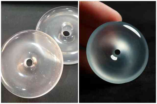 像左边这对水沫子平安扣,通透是通透,但终究比不上翡翠那莹润细腻的光感。