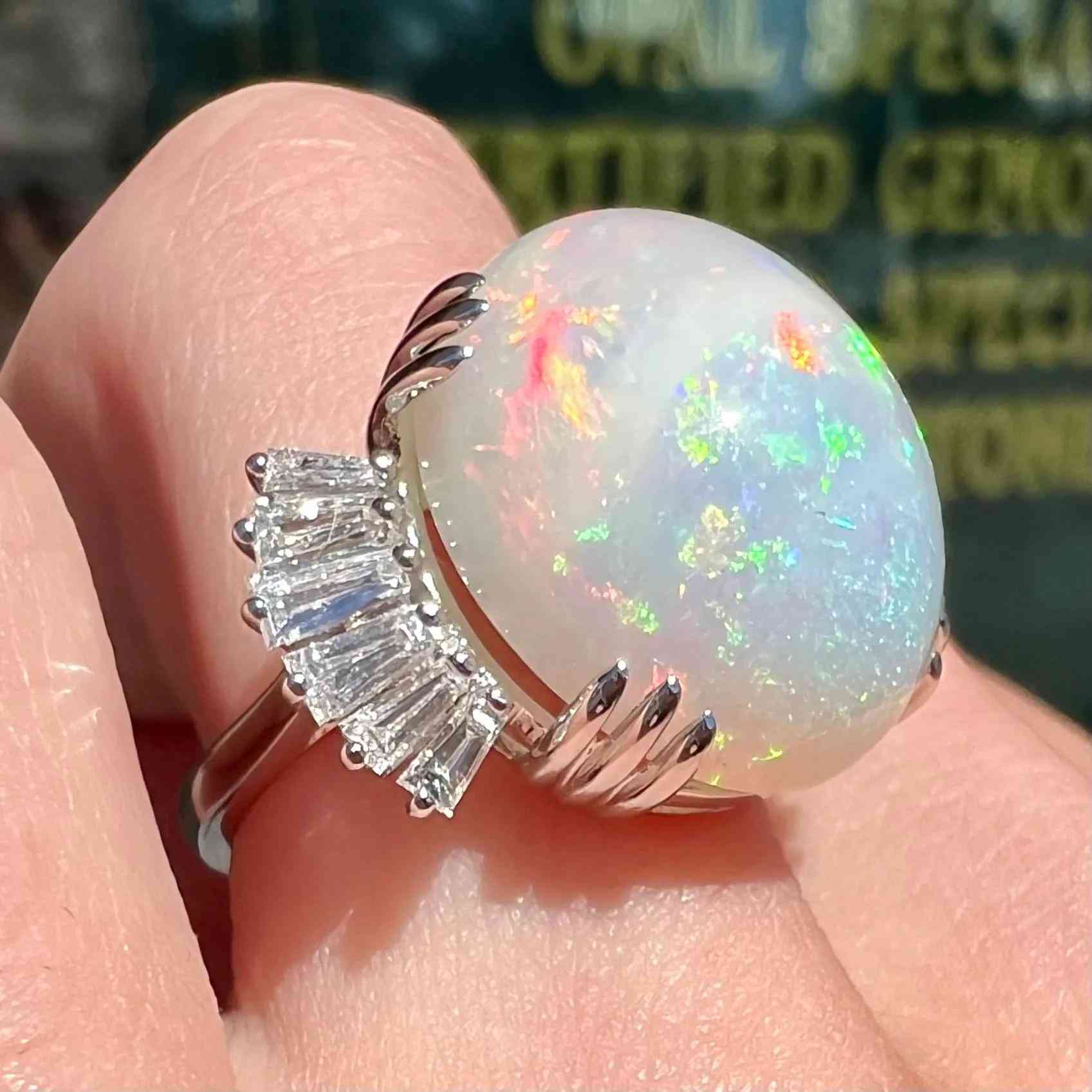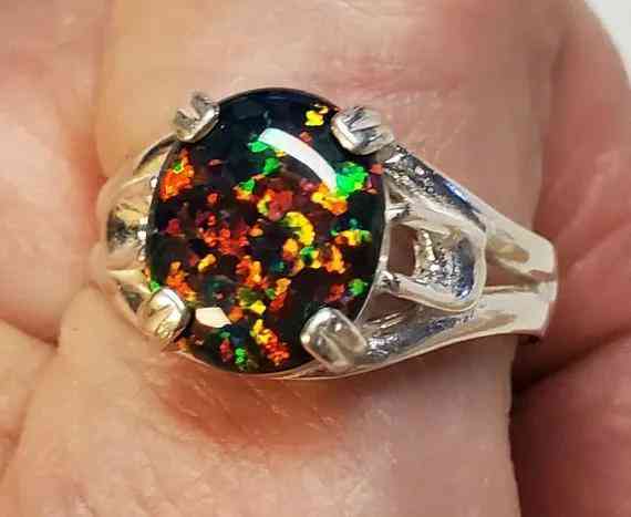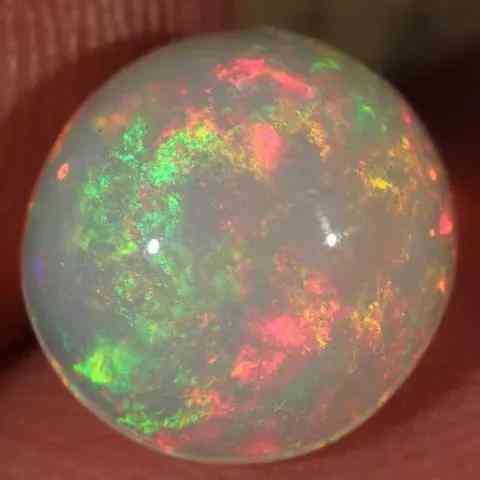 火欧泊是半透明的,包含绿色、黄色、橙色、红色和金色。随着石头的移动,颜色会闪烁和变换,称为“变色”。比其他类型的蛋白石更稀有,尤其是宝石级宝石。