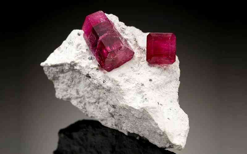 红宝石和蓝宝石一样,都是由刚玉形成的。红宝石被铬染成红色,比蓝宝石或钻石更稀有。红宝石一词来自拉丁语“ruber”或红色。