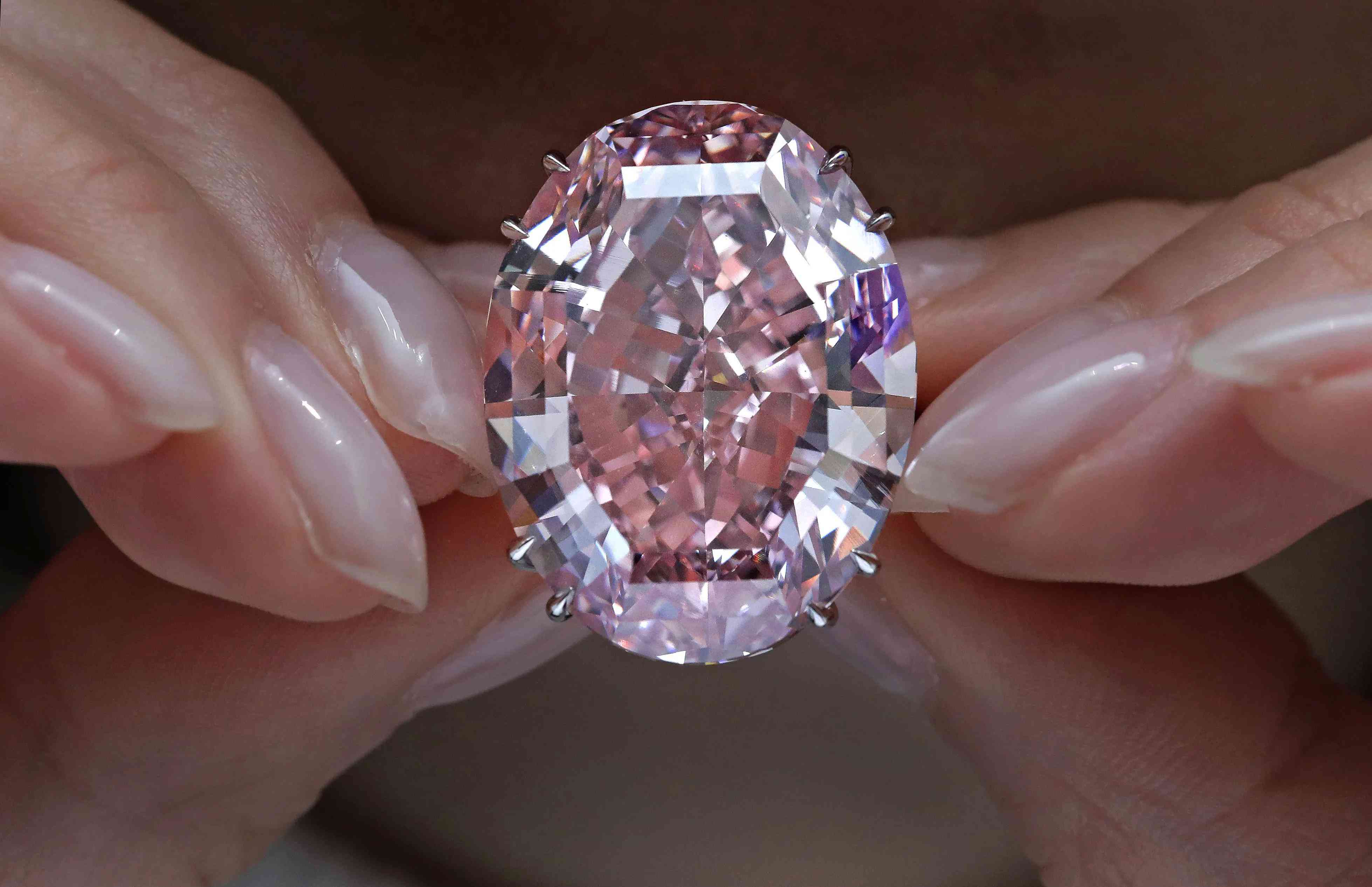 粉红之星钻石是一颗完美无瑕的宝石,在 2017 年创下拍卖史上最昂贵钻石的纪录,在苏富比拍卖会上以高达 7120 万美元的价格售出。这颗鲜艳的粉红色钻石重 59.6 克拉,镶嵌在铂金中。