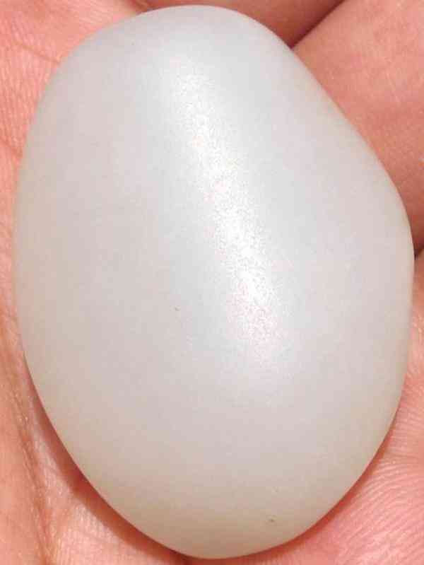 羊脂玉在人们手掌中不断的触摸过程中,自而然之,在玉石表面产生一种“油性”感,在一些和田细白玉中也有此现象。