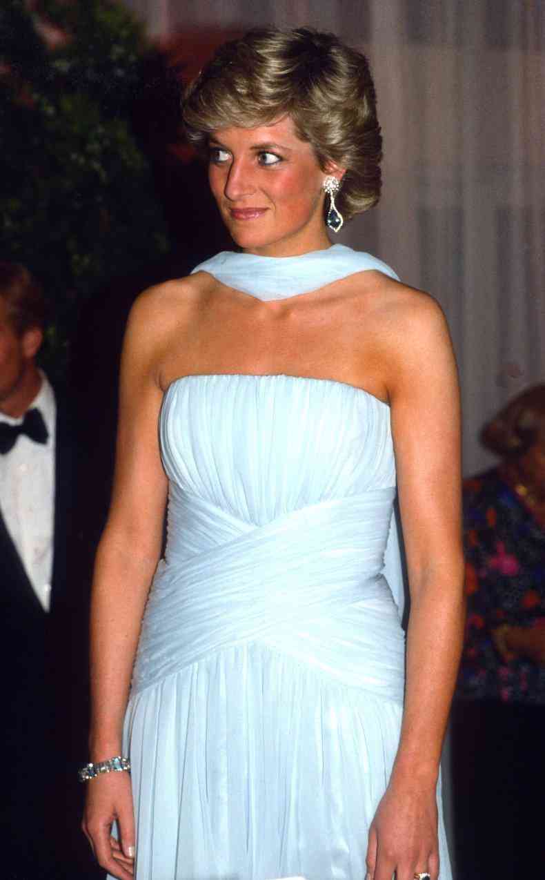 除了在如电影节这样带有一些娱乐意味的文化场合中佩戴,她还在国事招待会中,用斯宾塞家族王冠来与之搭配,比蓝宝石更能衬托出戴安娜王妃湖水一般湛蓝的眼睛。