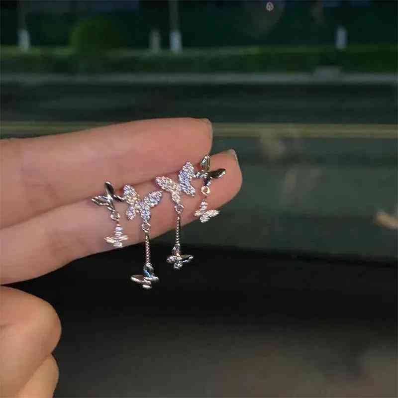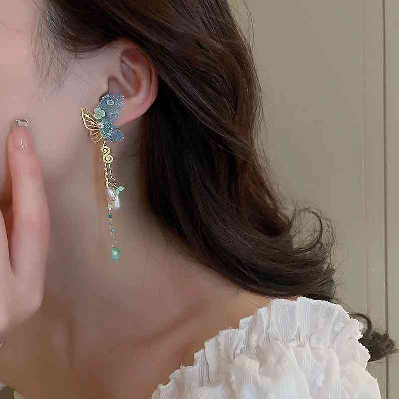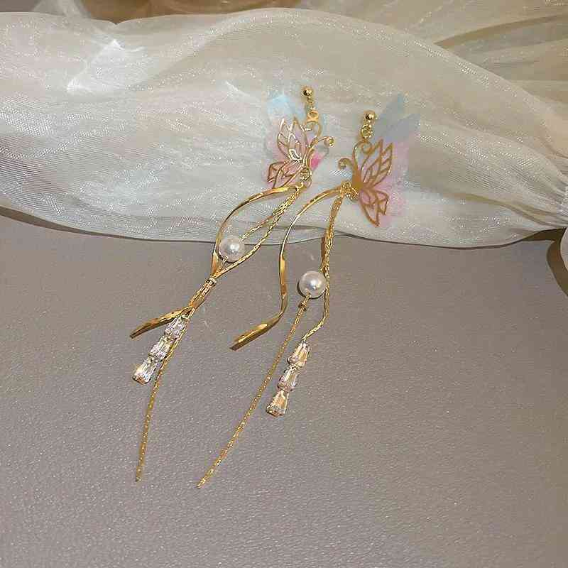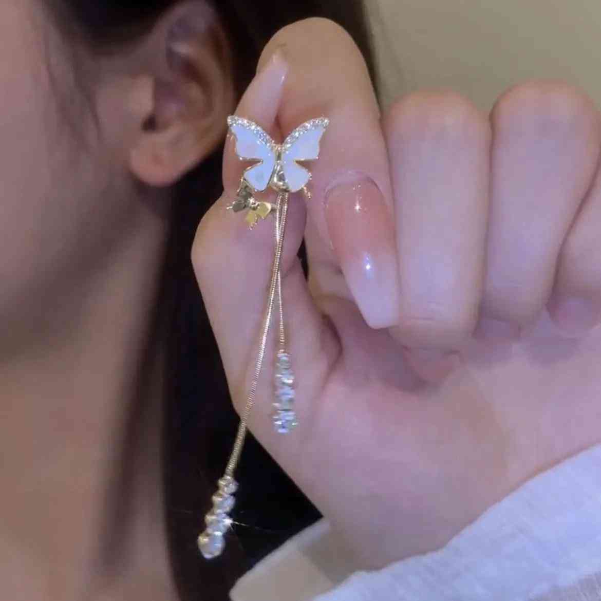 蝴蝶锆石珍珠耳环韩国小清新时尚设计感小众长款流苏耳坠气质耳环
