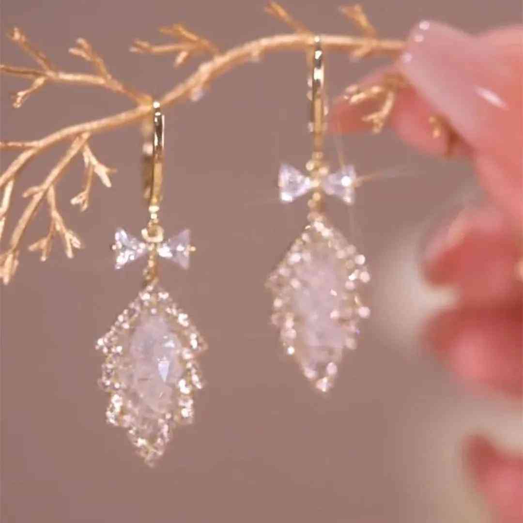 贝壳水钻流苏蝴蝶结耳环女2022年新款长款显瘦耳坠气质高级感耳饰
