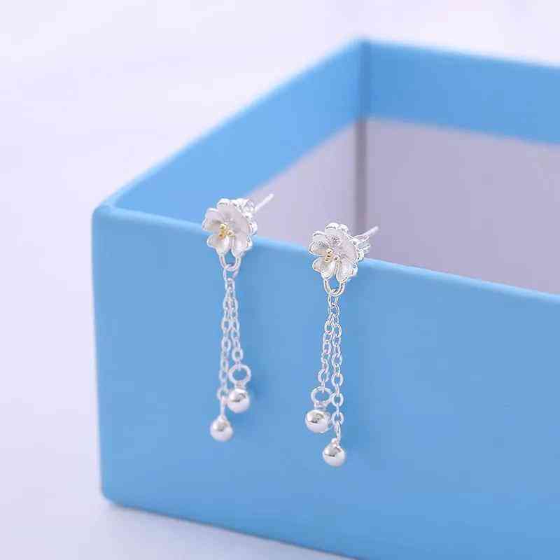 s925纯银针樱花耳环简约气质文艺清新花朵耳坠超仙流苏百搭耳饰