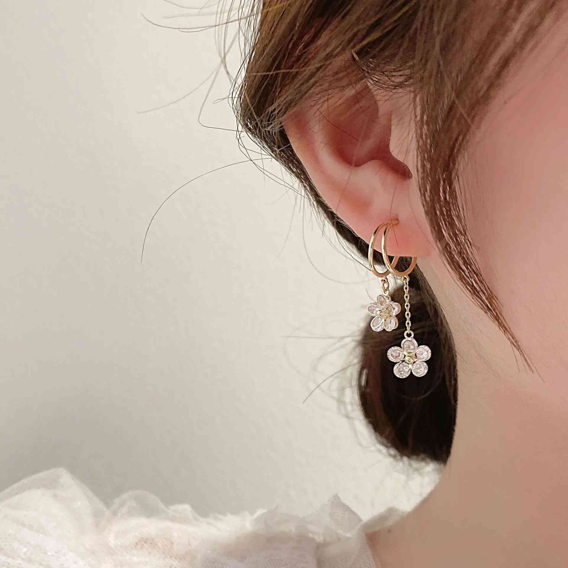 流苏耳坠水钻花朵耳环女2022新款小众设计感高级耳饰纯银轻奢耳扣