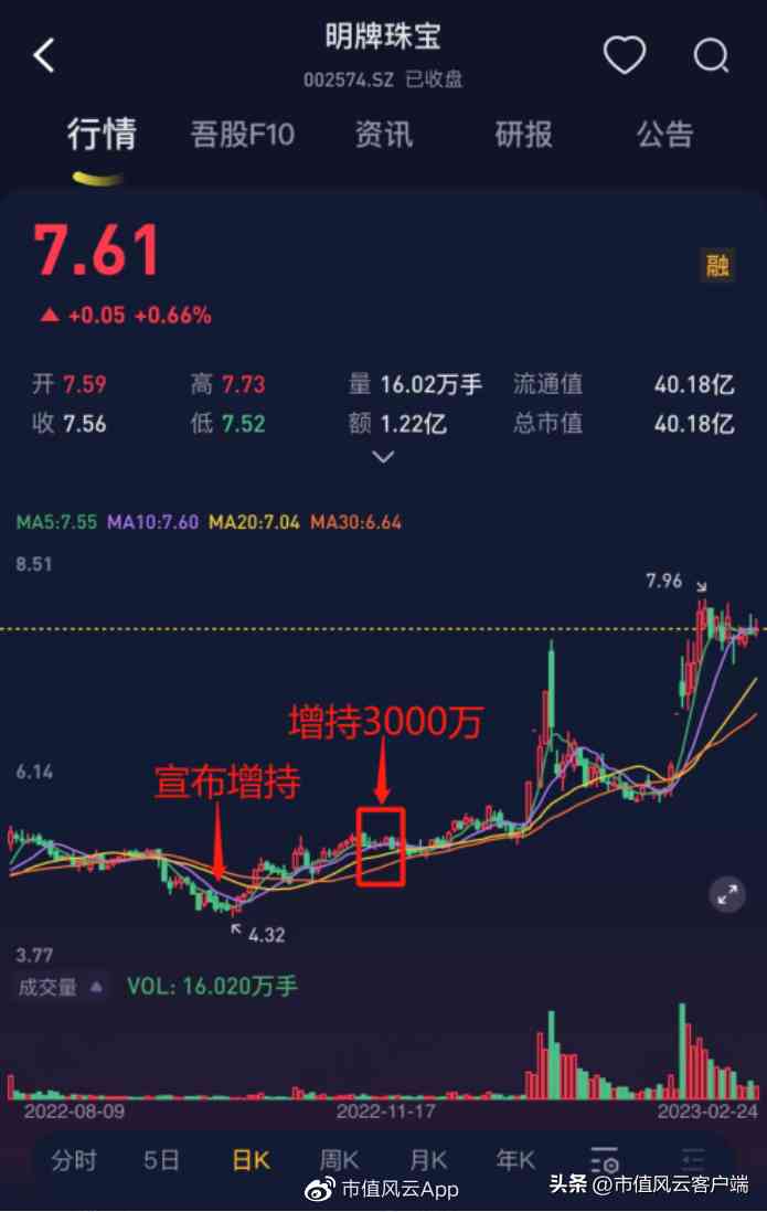 去年底实控人宣布增持并买入了3000万元公司股票,增持均价4.75元/股左右,以当前(2月24日)7.61元/股的收盘价来看,浮盈60%。
