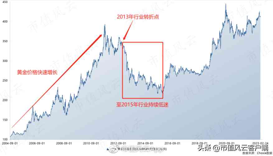 2013-2015年期间,金价连续下跌、投资需求疲弱,黄金珠宝行业持续低迷。