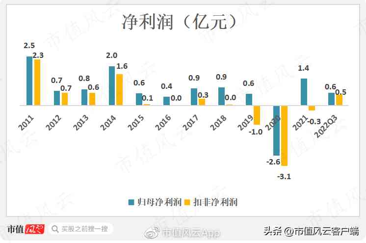 利润端也非常难看,2016年来,公司完全不赚钱,扣非净利润累计为负的3.5亿,2022年也预计亏损9500万-1.4亿。