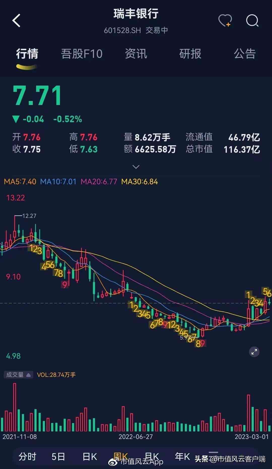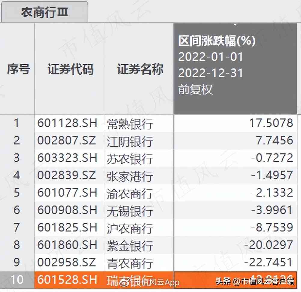 这可谓是“中国好股东“,相当于直接帮上市公司回购股份。但这一操作并没有使瑞丰银行股价出现半点波澜,2022年瑞丰银行股价跌近43%,在A股10家农商行中垫底。