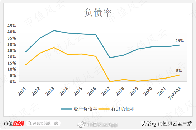 从负债来看,当前公司债务水平总体可控。2017年由于到期偿还了10亿公司债负债率陡然下滑,截至2022年9月底,资产负债率29%,有息负债率仅5%,但若真要应对百亿的跨界投资,可想而知未来债务将急剧拉升。