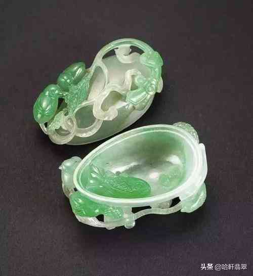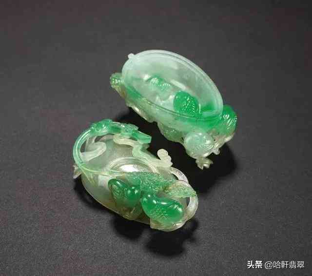 据资料记载,这件翡翠盖盒采用的是天然飘绿冰种石材,已然十分接近于现代的冰种翡翠了。
