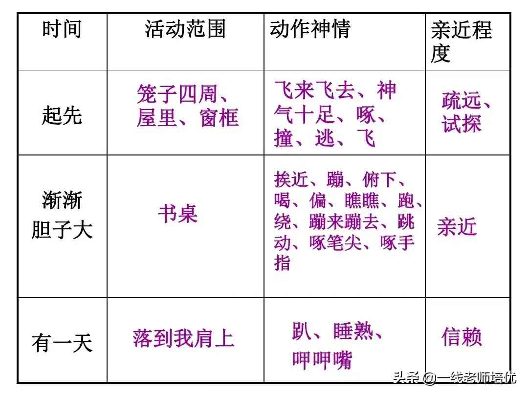 这篇本文叙述了“我”和珍珠鸟从相识、熟悉、亲近到信赖的关系变化过程。