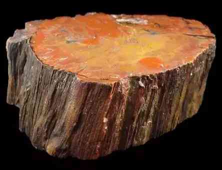由二氧化硅交代树木而成的隐晶质-显晶质石英集合体,可含有少量蛋白石、有机质等。半透明-不透明。粒状结构、纤维状结构,可见木纹、树皮、节瘤、蛀洞等特征。常见颜色为黄褐、棕红、灰白、灰黑等。抛光面常呈玻璃光泽,断面常呈蜡状光泽,有时可见油脂光泽。