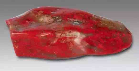 内部结构晶质集合体,致密块状,放大检查:“血”呈微细粒或细粒状,成片或零星分布于“地”中。土状光泽,蜡状光泽至玻璃光泽。摩氏硬度:2~3。密度:2.53g/cm3 ~2.68 g/cm3平均为2.61 g/cm3。折 射 率:“地”约1.56(点测法)。