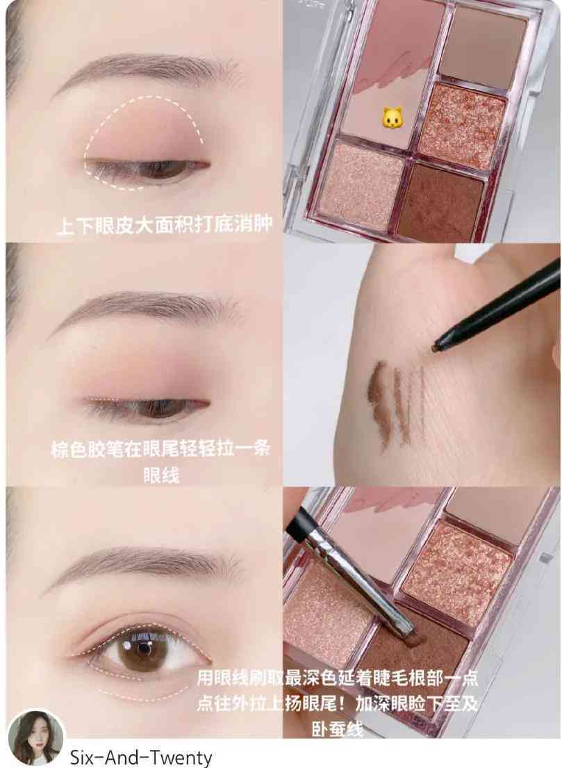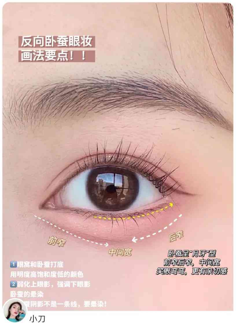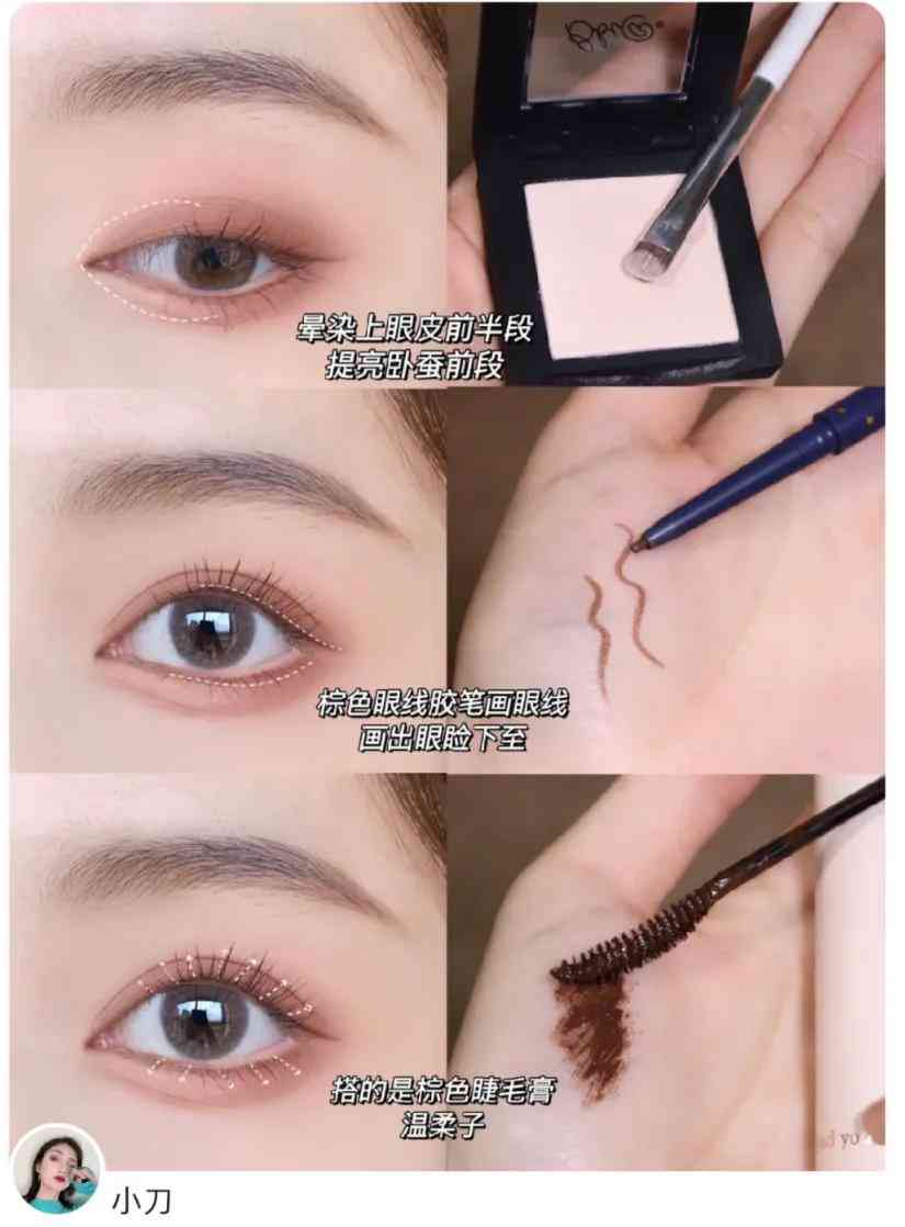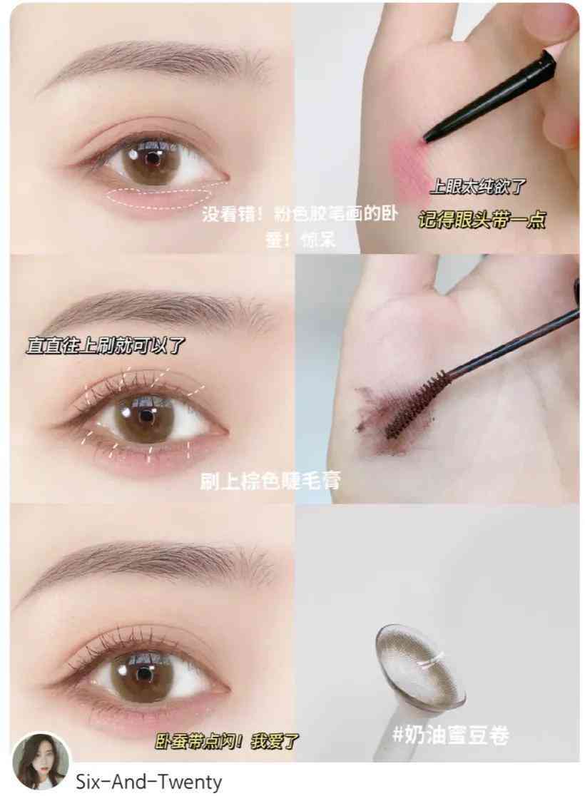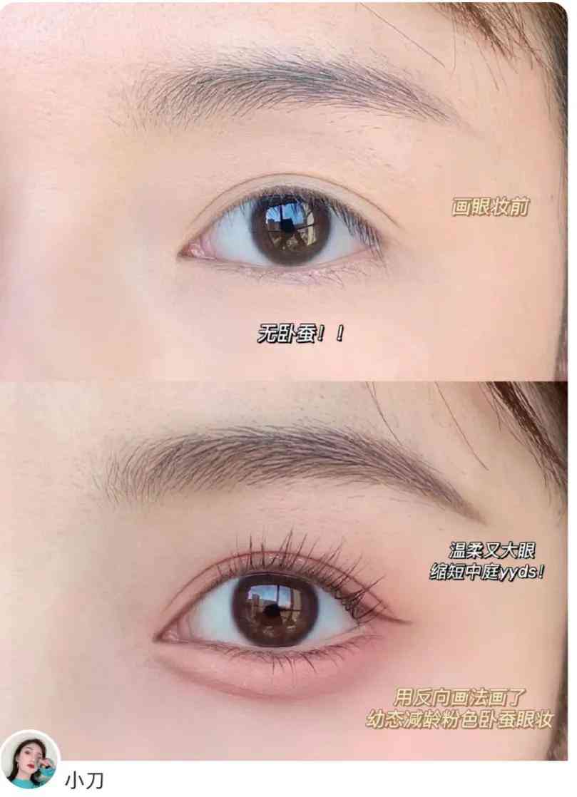 然后还是用粉色的眼线胶笔在卧蚕中间的位置进行提亮,突出粉嫩的感觉。