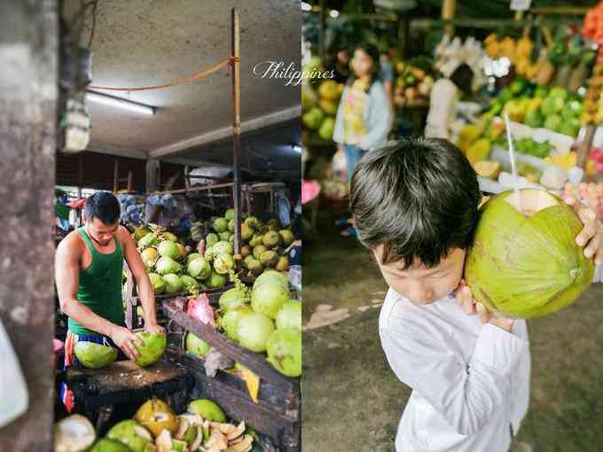 热带都剩产椰子,到处都是椰子树,杜马市场的椰子是我买过最便的,20P一个,水份多,一个能喝饱一家三口,喝完一定要把肉刮出来吃,跟吃布丁一样.去市场就去找下面这个小哥买,小哥劈椰子都不用看着,看得我们为他出了一身冷汗.