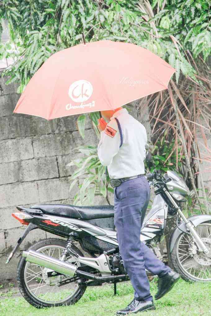 酒店的保安,白天一整天都会坐在门口位置,下雨雨坐在屋檐下.