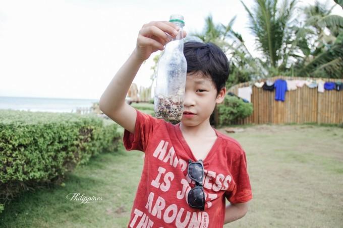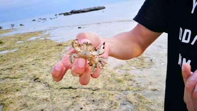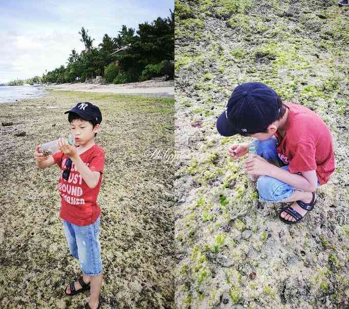 被儿子发现沙滩上有很多的小寄居蟹,拿了个瓶子吵着抓寄居蟹,一会功夫就抓了几十只,不过看一会就会把他们放走。