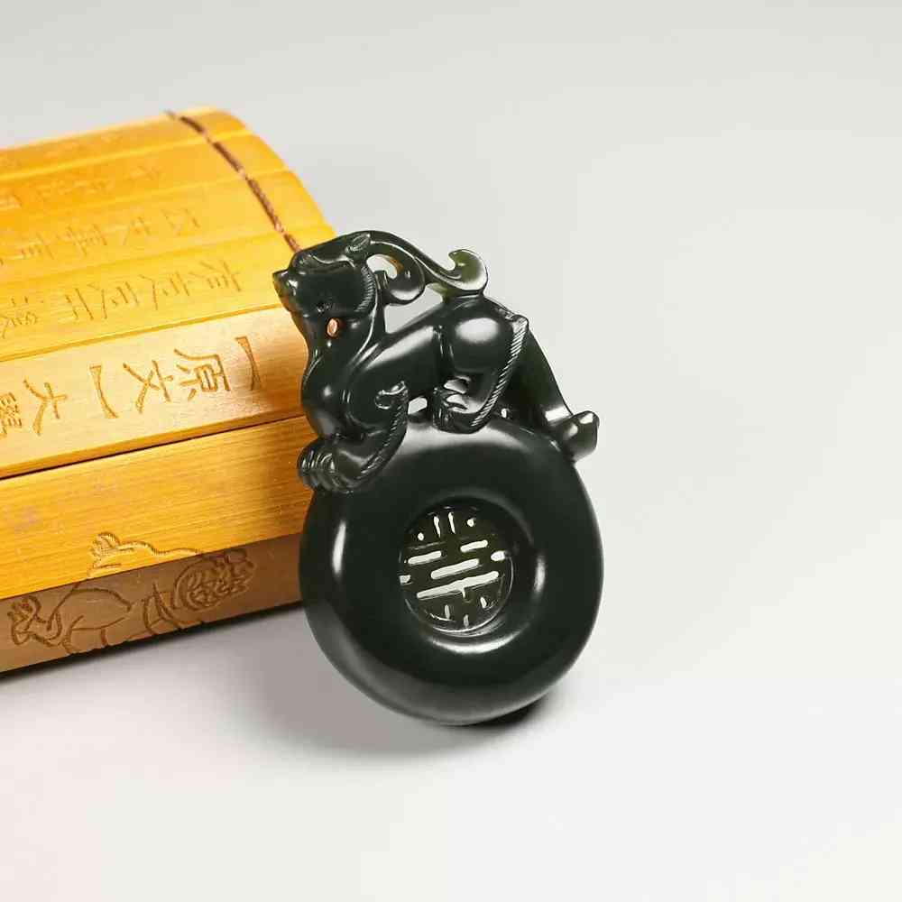 它具备和田玉的所有优秀品质,坚致温润,漆黑如墨,色重质腻,纹理细致,光洁典雅。