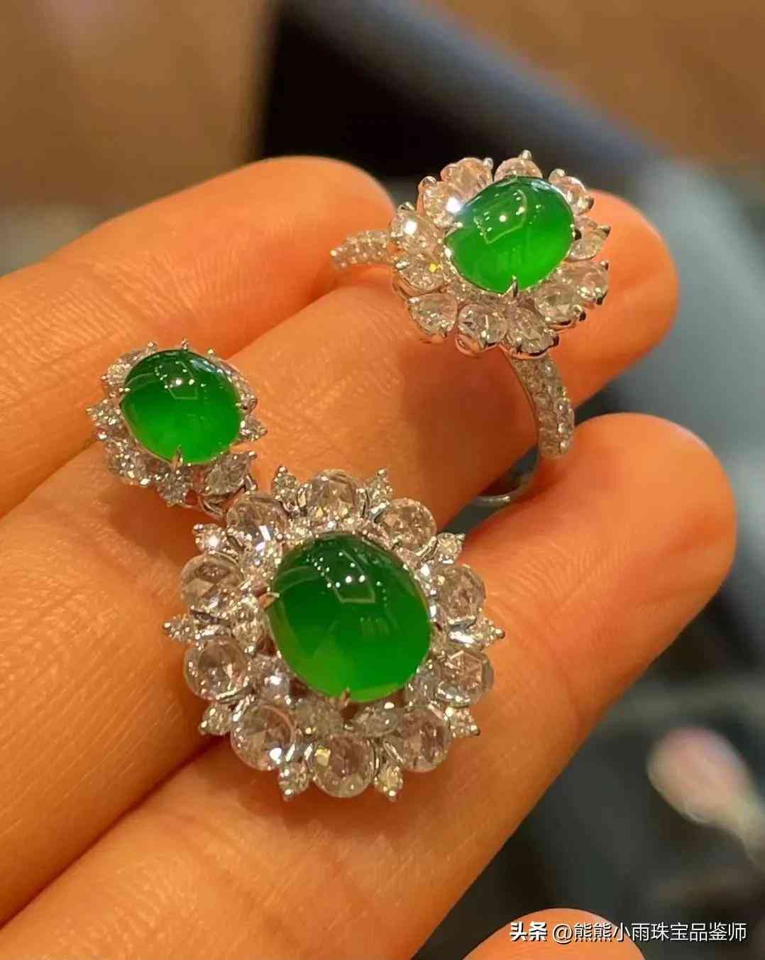 18k白金钻石镶嵌翡翠玉套装