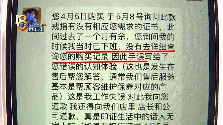“老凤祥”嘉兴海盐吾悦广场店 孙店长:“她问的是证书,没有说GIA,这个就是当时说的,你说你有理,我说我有理(一共两份证书,你们有一份,你就说你们有证书)没有,因为她问的是有没有证书,我们这个叫证书,那个叫GIA证书。”