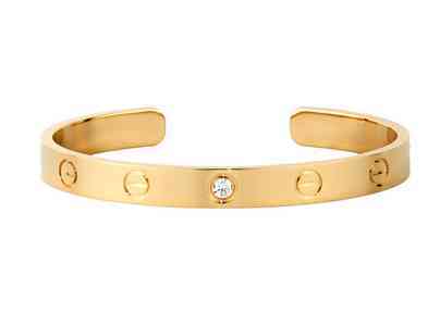 卡地亚品牌可以说是奢侈品牌,其产品的做工经典而又不乏华丽,并不是普通的消费人群有足够的能力购买的。卡地亚的大多数手镯的材质都是18K玫瑰金以及16K玫瑰金,大多数手镯都会有镶钻设计,主要是为了可以提高手镯整体的色泽,手镯的设计处处彰显贵族风范。