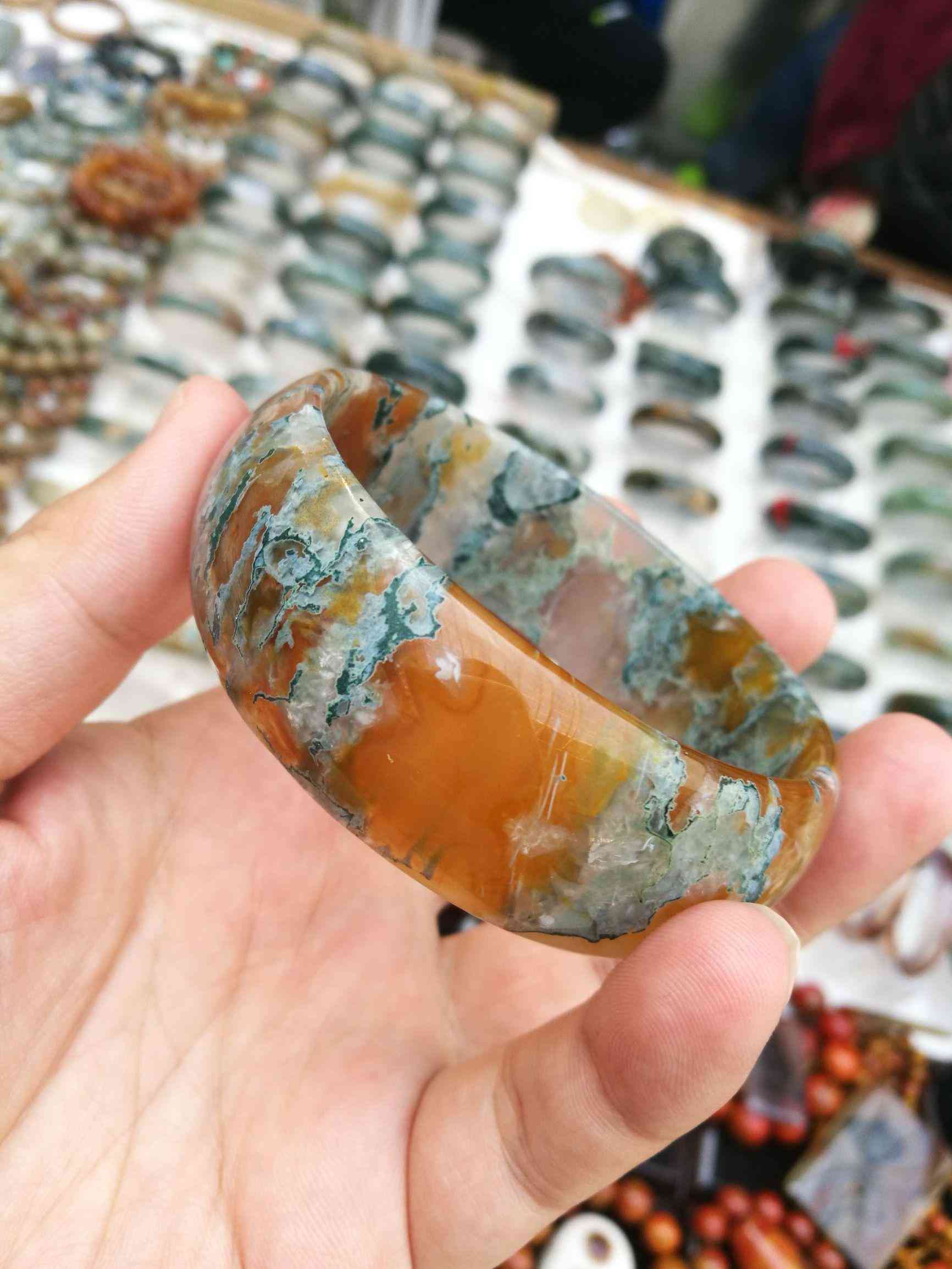 这个是阜新本地玛瑙石出来的手镯,价值1500元。
