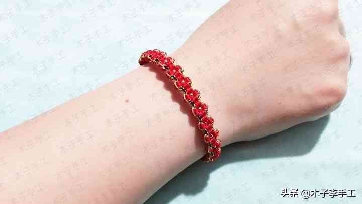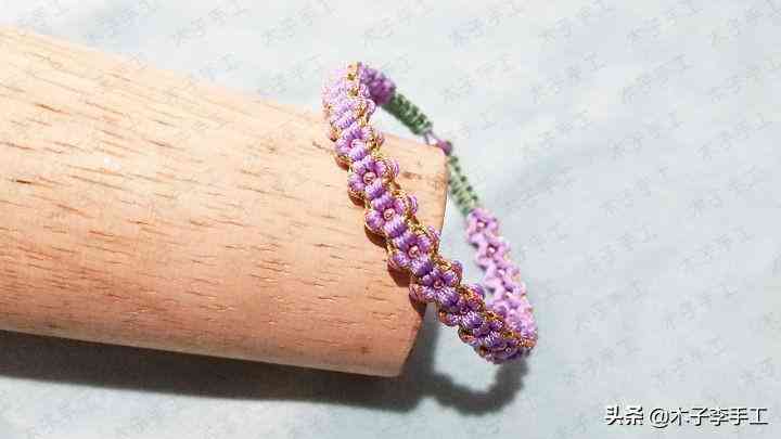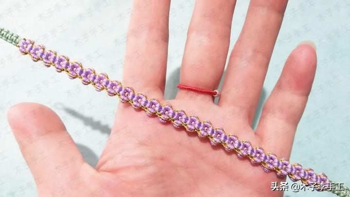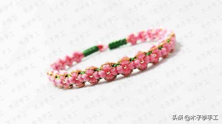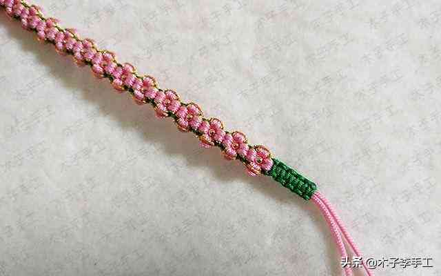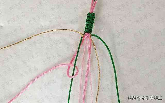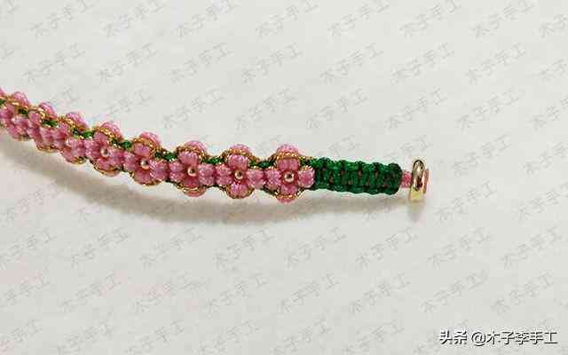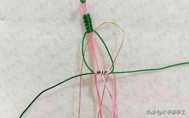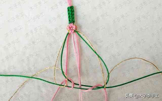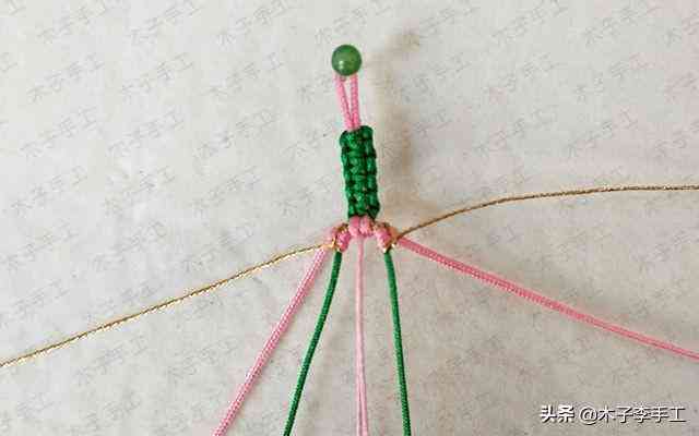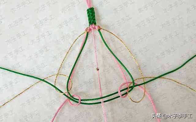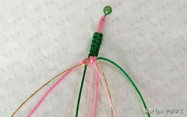 22、根前面一样,绿色线再次交叉,金线和粉红色A玉线分别在左右两边绕一圈
