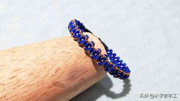 30、2根A玉线穿入一颗尾珠(就是6mm的包金隔片),剪掉多余的线头,尾珠的左右都留1mm左右,再用打火机烫下线头,用打火机金属片把烫融的线头压扁,这样桃花手链就完成了