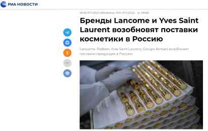 【环球网报道 记者 张晓雅】 综合卫星通讯社、俄新社等俄罗斯媒体7日消息,俄罗斯工业和贸易部一名发言人告诉媒体,俄方已取消对兰蔻、列德肯、YSL圣罗兰、乔治•阿玛尼和卡诗Kerastase等品牌香水和化妆品的平行进口,原因是这些品牌已准备好恢复对俄供应商品。