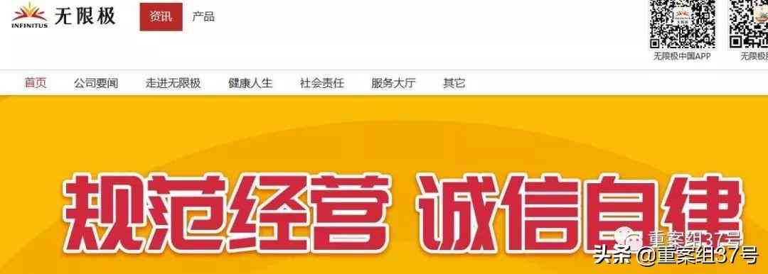▲无限极官网强调规范经营,诚信自律。 网页截图